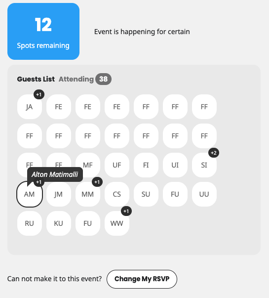 Users can look up their RSVP using email or if loggedin already find their RSVP and easily change their RSVP status.