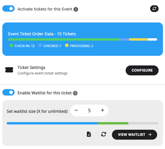 Ticket waitlist sign up form and waitlist data is seamlessly integrated with the EventON Tickets content box.