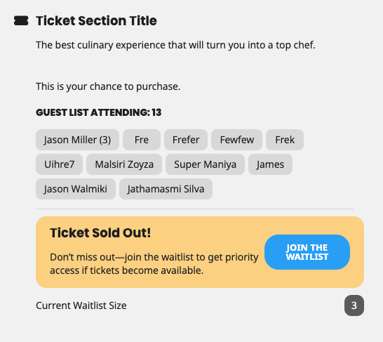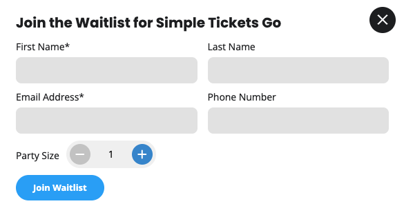 Simple ticket waitlist signup form allow customers to add themselves into the waitlist to have an opportunity to get space for the event.